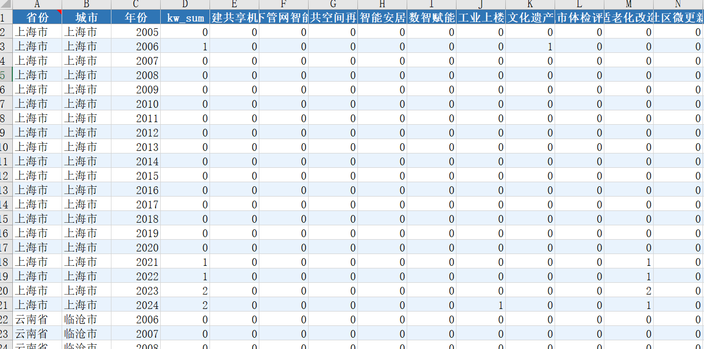 地级市城市更新与老旧小区改造文本分析词频数据 2005-2025