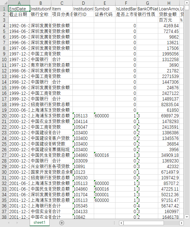 截止日期 银行全称 项目分类名称 银行ID 证券代码 是否上市银行 银行性质 贷款金额 贷款金额占比 不良贷款金额 不良贷款率