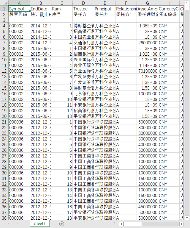 股票代码 统计截止日期 序号 受托方 委托方 委托方与上市公司关联关系 委托理财金额 货币编码 货币类型 委托理财方式编码 委托理财方式 理财产品名称 投资范围 委托期限 开始日期 截止日期 收益类型编码 收益类型 收益及费用说明 实际收益 实际收益率 实际收回金额 是否关联交易 说明