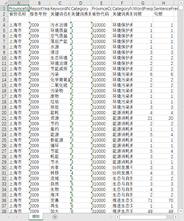 省份名称 报告年份 关键词名称 关键词类别编码 省份代码 关键词类别名称 词频 句频