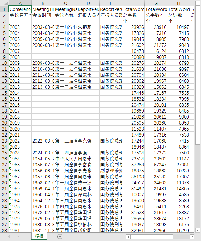 会议召开年份 会议时间 会议名称 汇报人员名称 汇报人员职位 总字数 总字数2 总词数 总词数2 总句数 报告内容