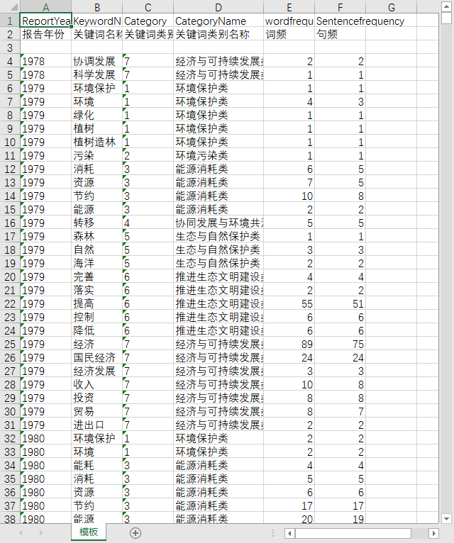 报告年份 关键词名称 关键词类别编码 关键词类别名称 词频 句频