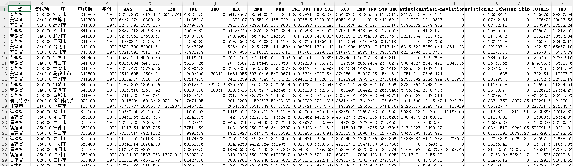 1970~2024年各地级市各部门的二氧化碳总排放量数据