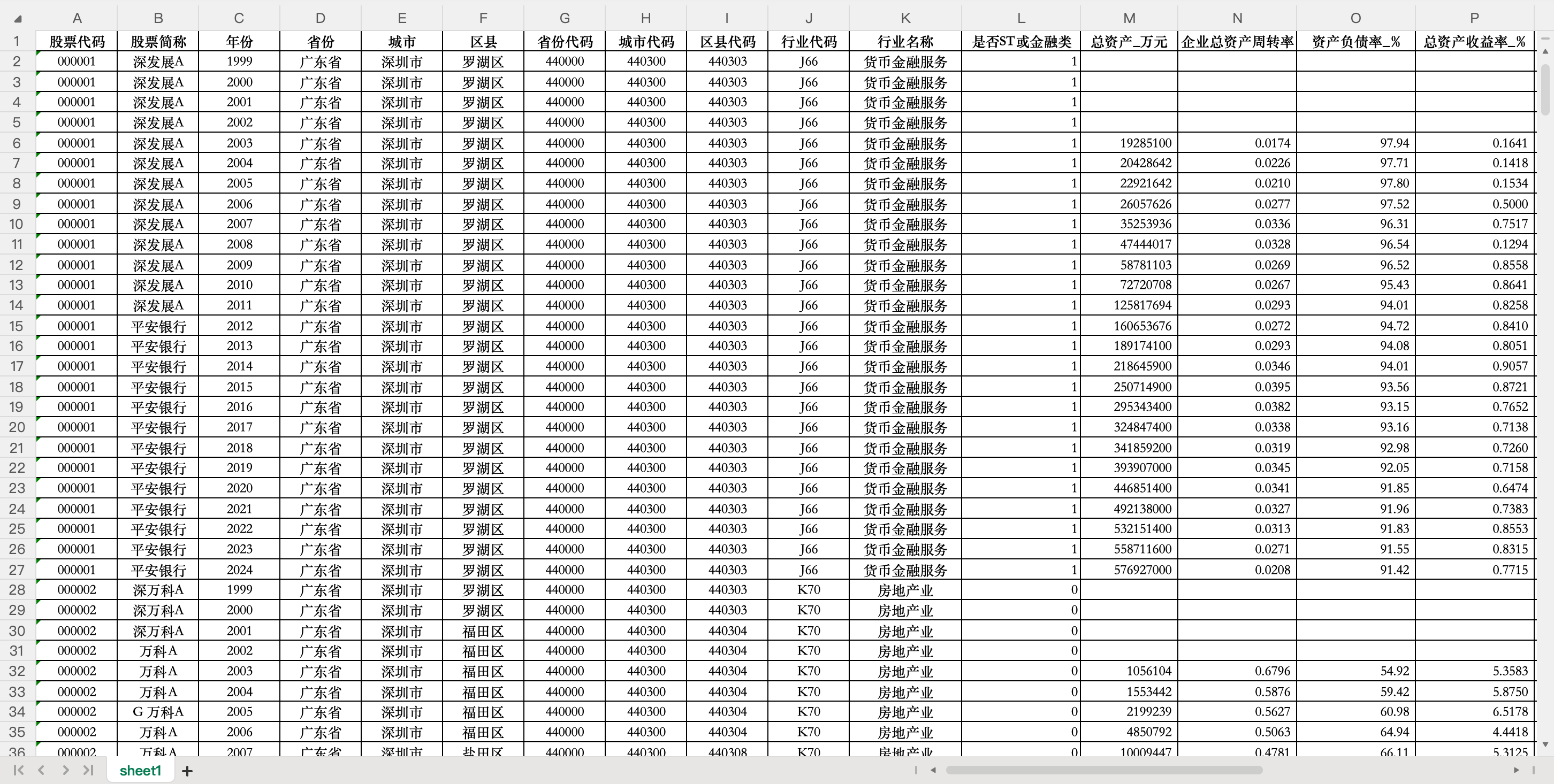 行业代码 行业名称 是否ST类或金融类