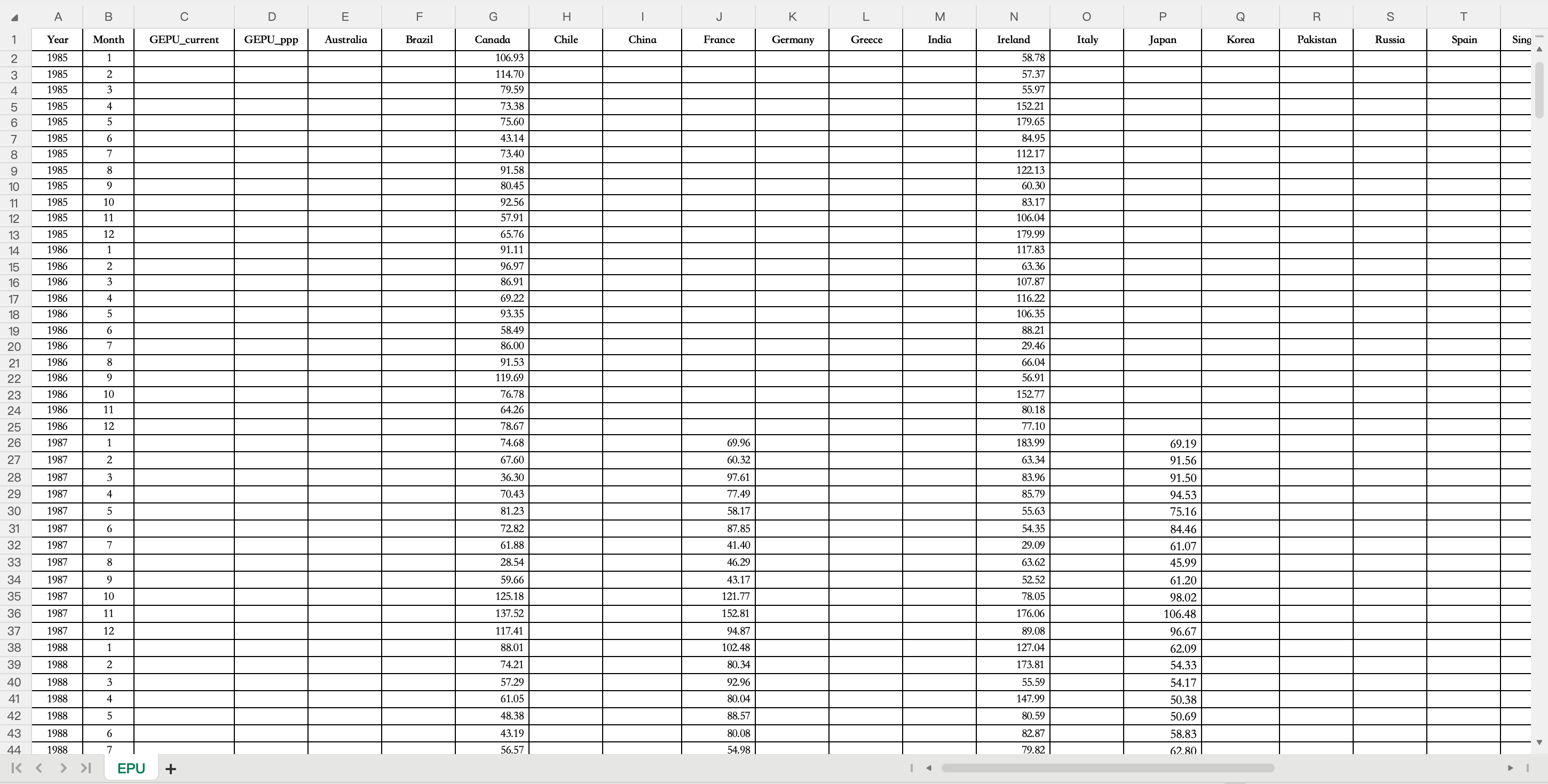 数据名称:世界各国经济政策不确定性指数
