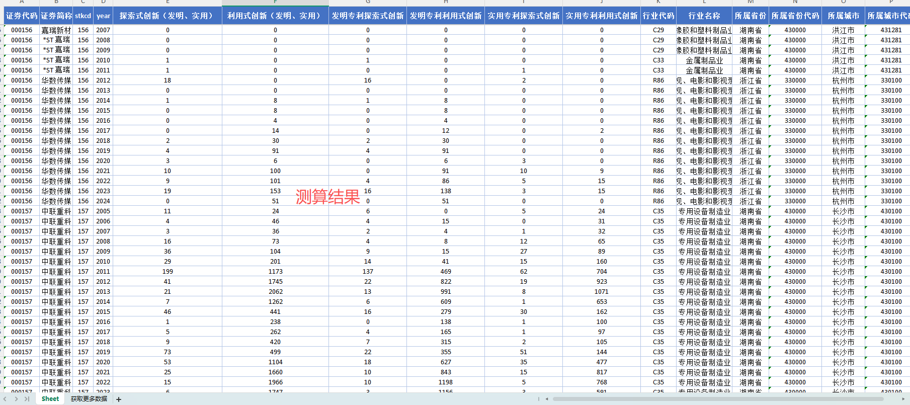 附件1 测算结果-企业双元创新/探索式创新/利用式创新数据2000-2024