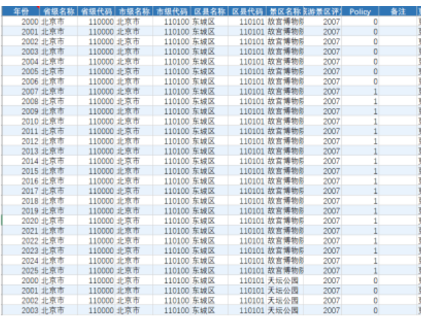 注:Policy=1表示该地点在样本区间内属于5A级旅游景区;Policy=0表示该地点在样本区间内不属于5A级旅游景区