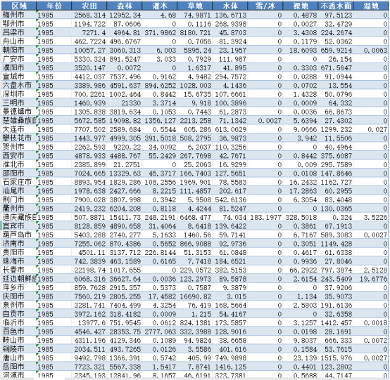 中国省市县不同类型土地面积(1985-2024)