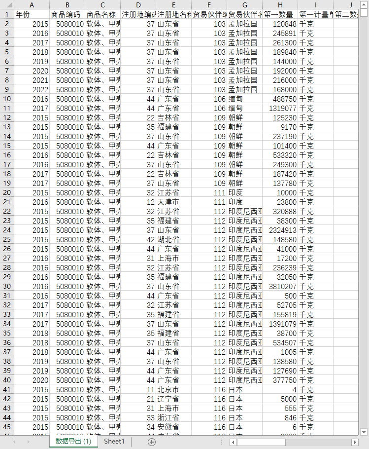 数据范围:全国31个省份,分别明细到 全球世界各国 的贸易数据