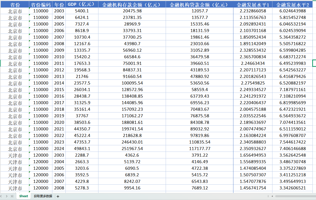 31省级金融发展水平数据/金融机构存款余额/金融机构贷款余额,2003-2024年,附原始数据,整理好的面板数据,excel或stata版