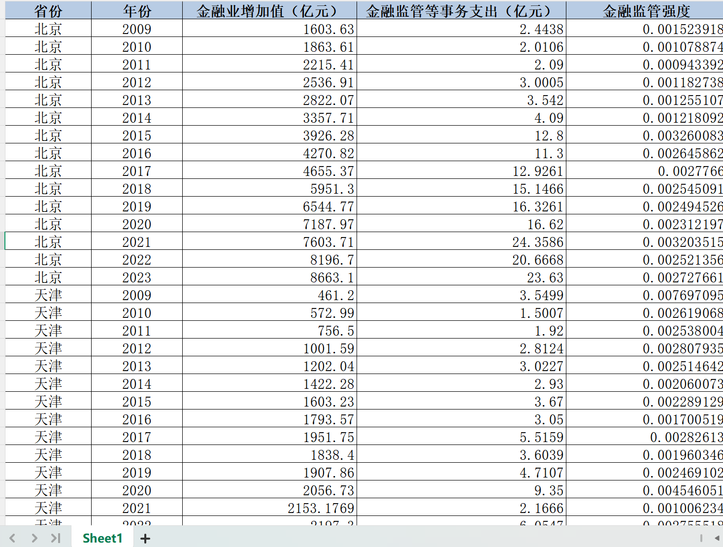 31省-省级金融监管强度数据(2009-2023年)01、数据简介