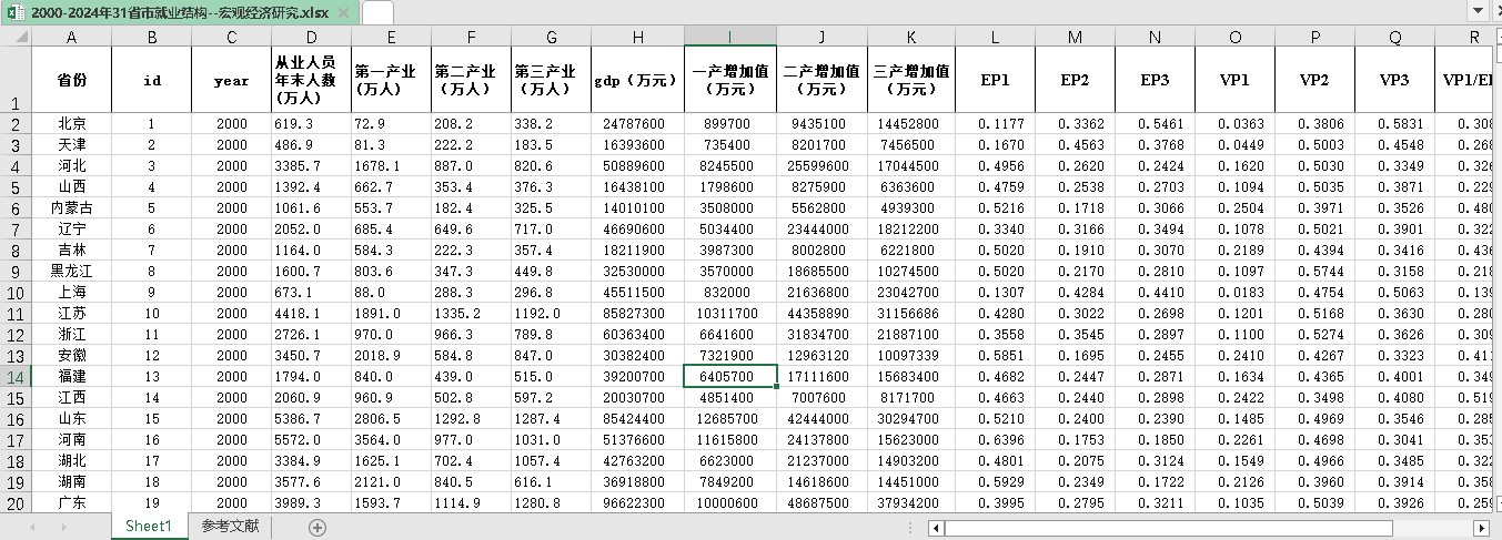 2000-2024年31省市就业结构--宏观经济研究.xlsx