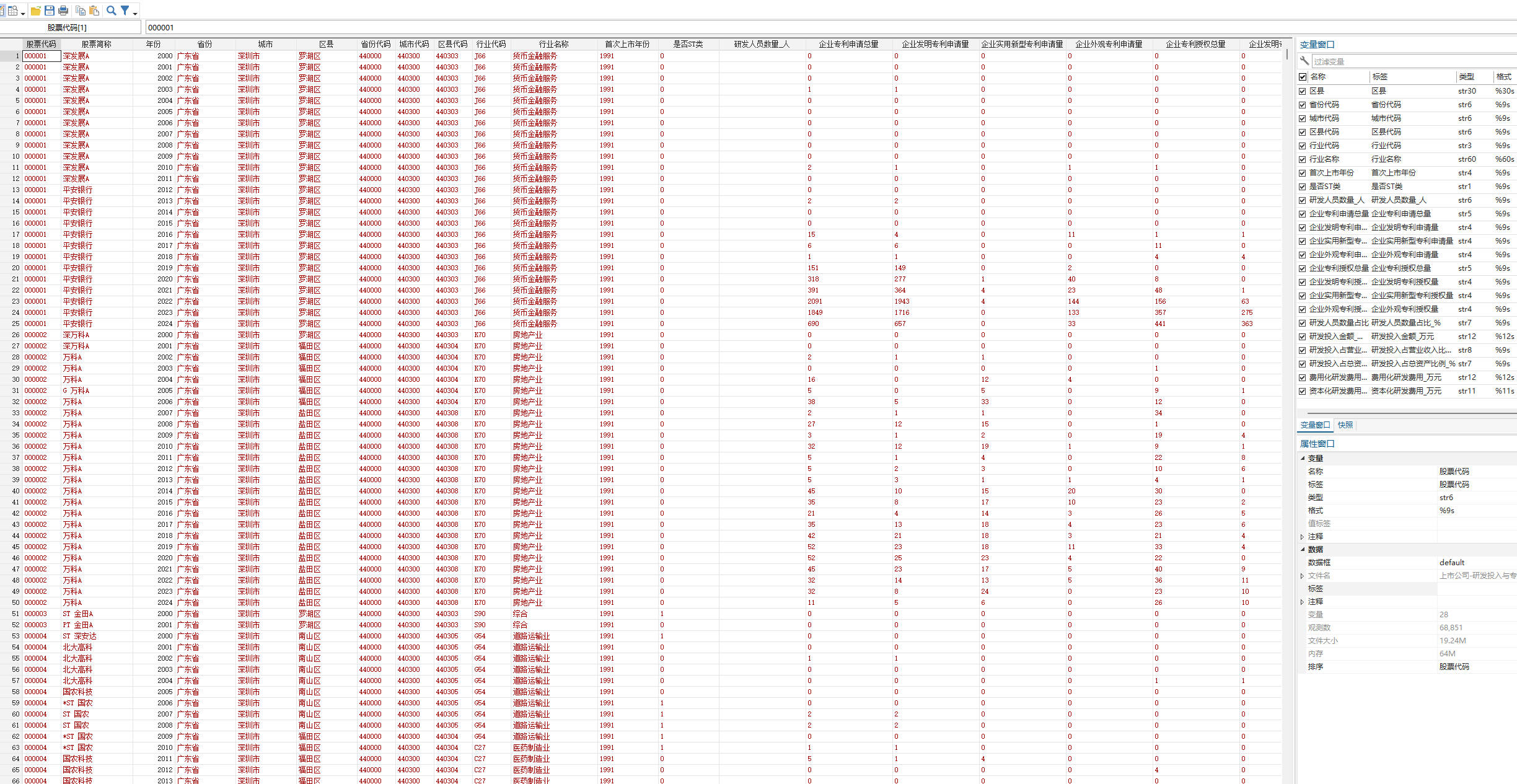 1. 上市公司-研发投入与专利数据(2000-2024年).dta - Stata格式