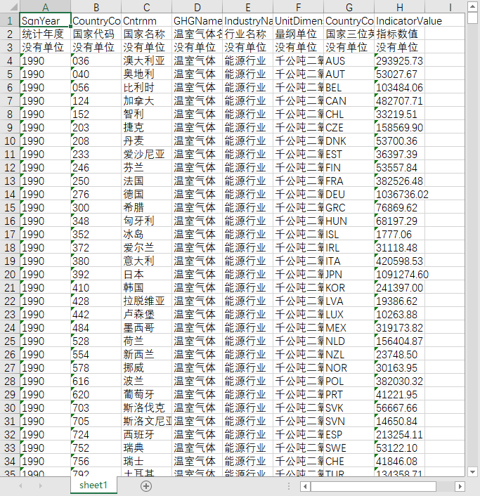 统计年度 国家代码 国家名称 温室气体名称 行业名称 量纲单位 国家三位英文代码 指标数值