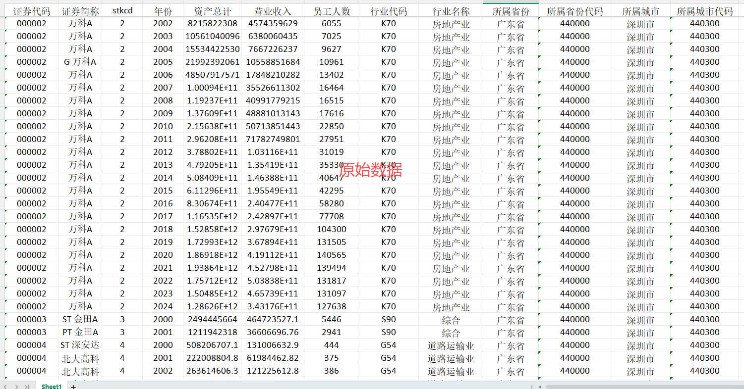 上市公司企业产能利用率/营业收入/员工人数(2000-2024年),原始数据/测算代码/计算结果/参考文献,整理好的面板数据,excel或stata版本