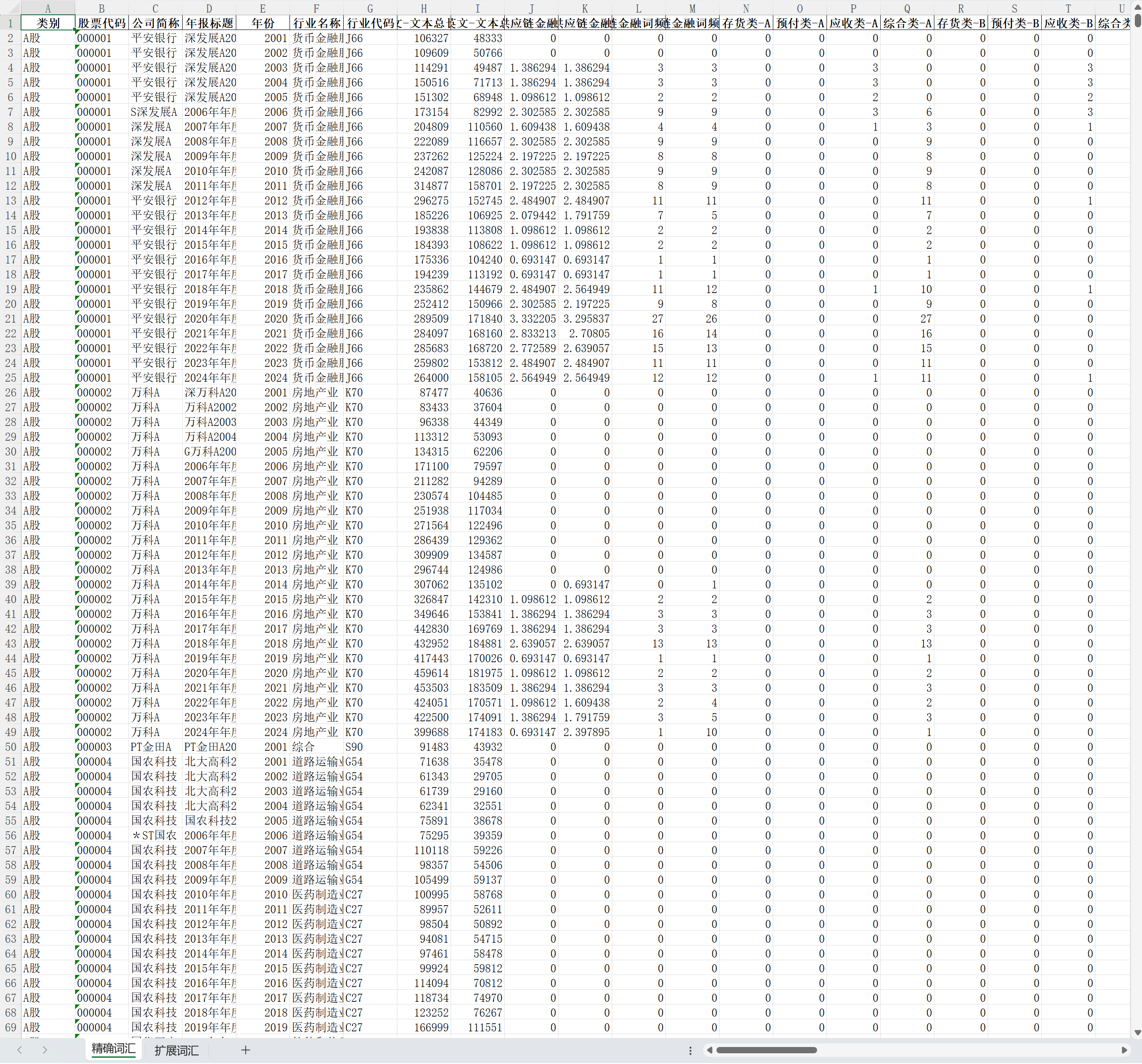 行业代码 全文-文本总长度 仅中英文-文本总长度