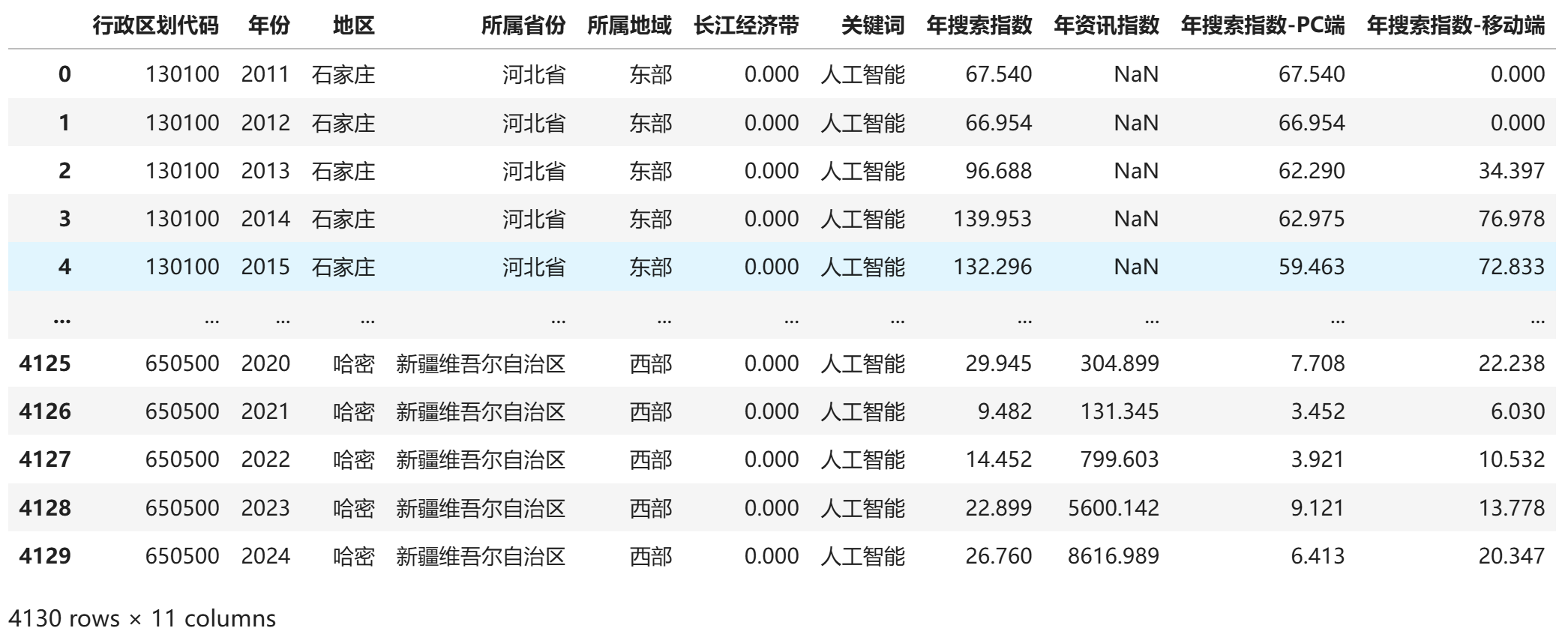 参考郑世林(2021)的做法,团队整理了各地级市、省级的"人工智能"的百度搜索指数、资讯指数,以衡量31省、295地级市的人工智能关注水平,数据更新至2024.12