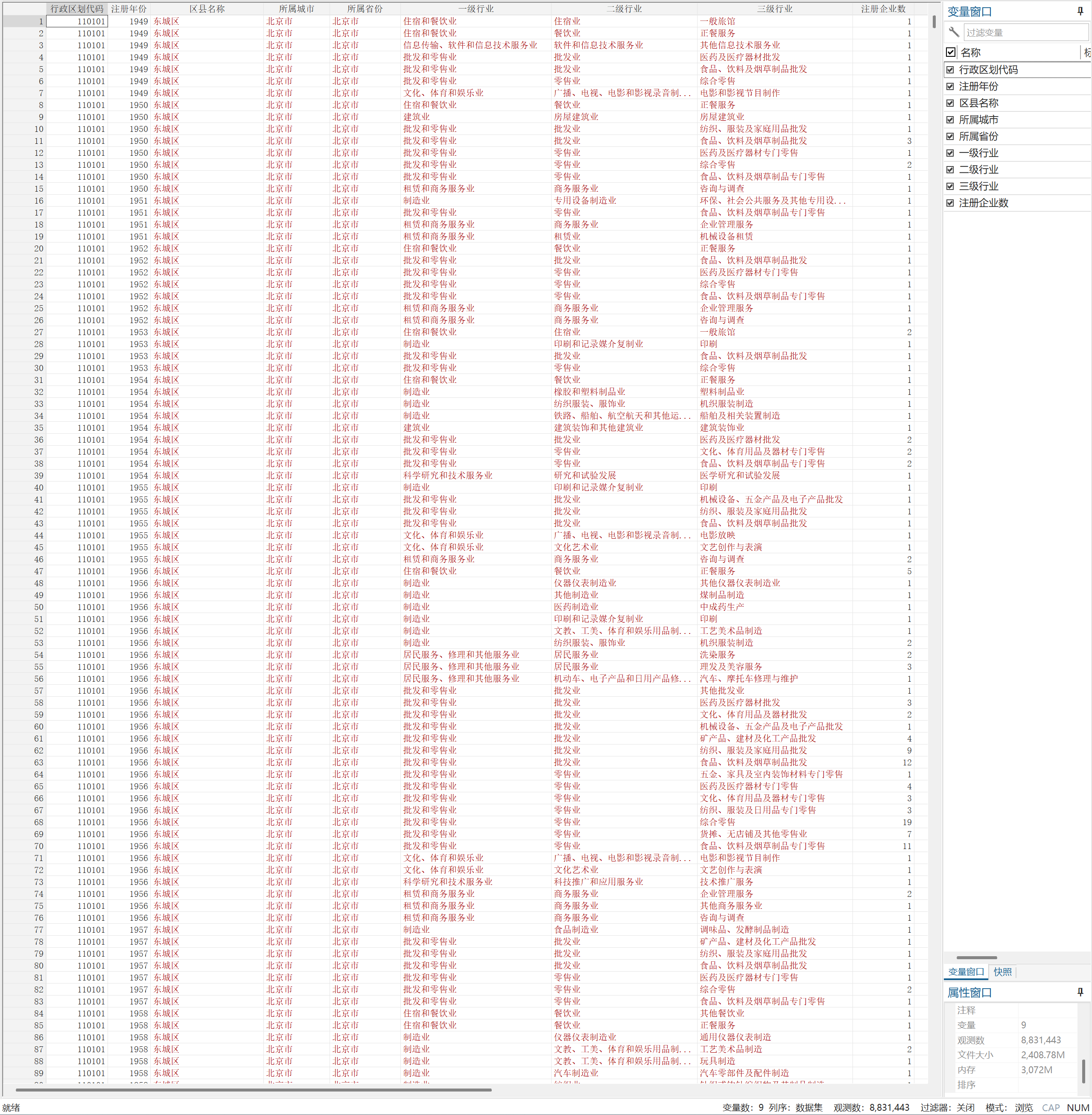 800万+中国区县行业-新注册企业数据(1949-2024年)