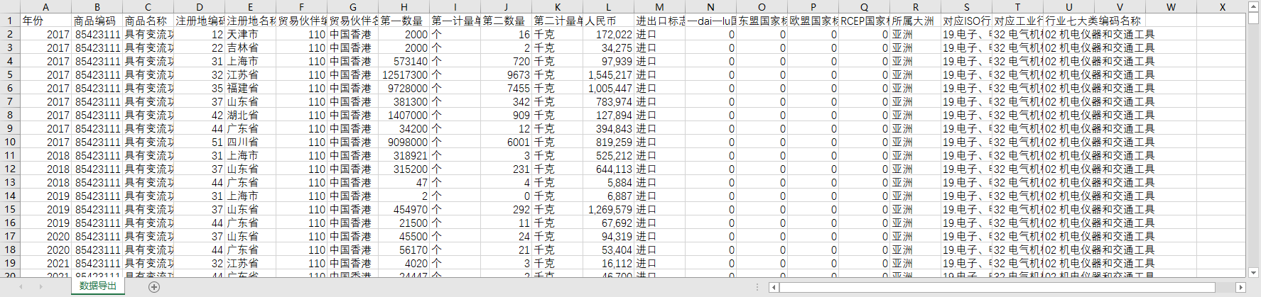全国31个省份半导体集成电路智能IC芯片CPU控制器内存储器等进出口2015-2025 HS8进出口贸易全球世界各国东盟欧盟RCEPISO行业七大类工业分类