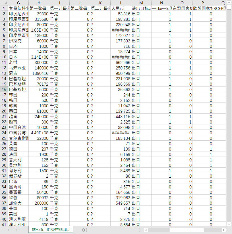 进出口具体明细的产品主要是26、81下的具体8位数的商品: