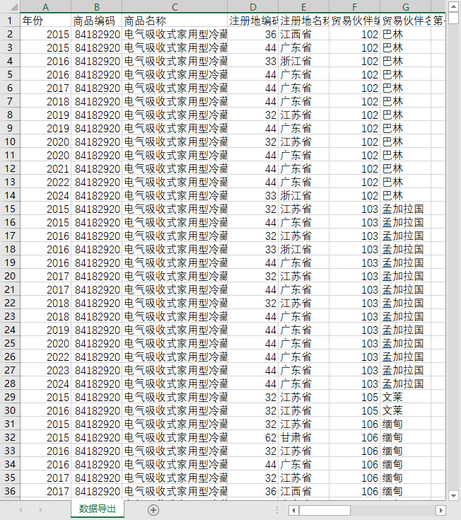全国31个省份家电家用电器冰箱冰柜进出口全球世界各国地区2015-2025HS8东盟欧盟RCEPISO行业七大类工业分类