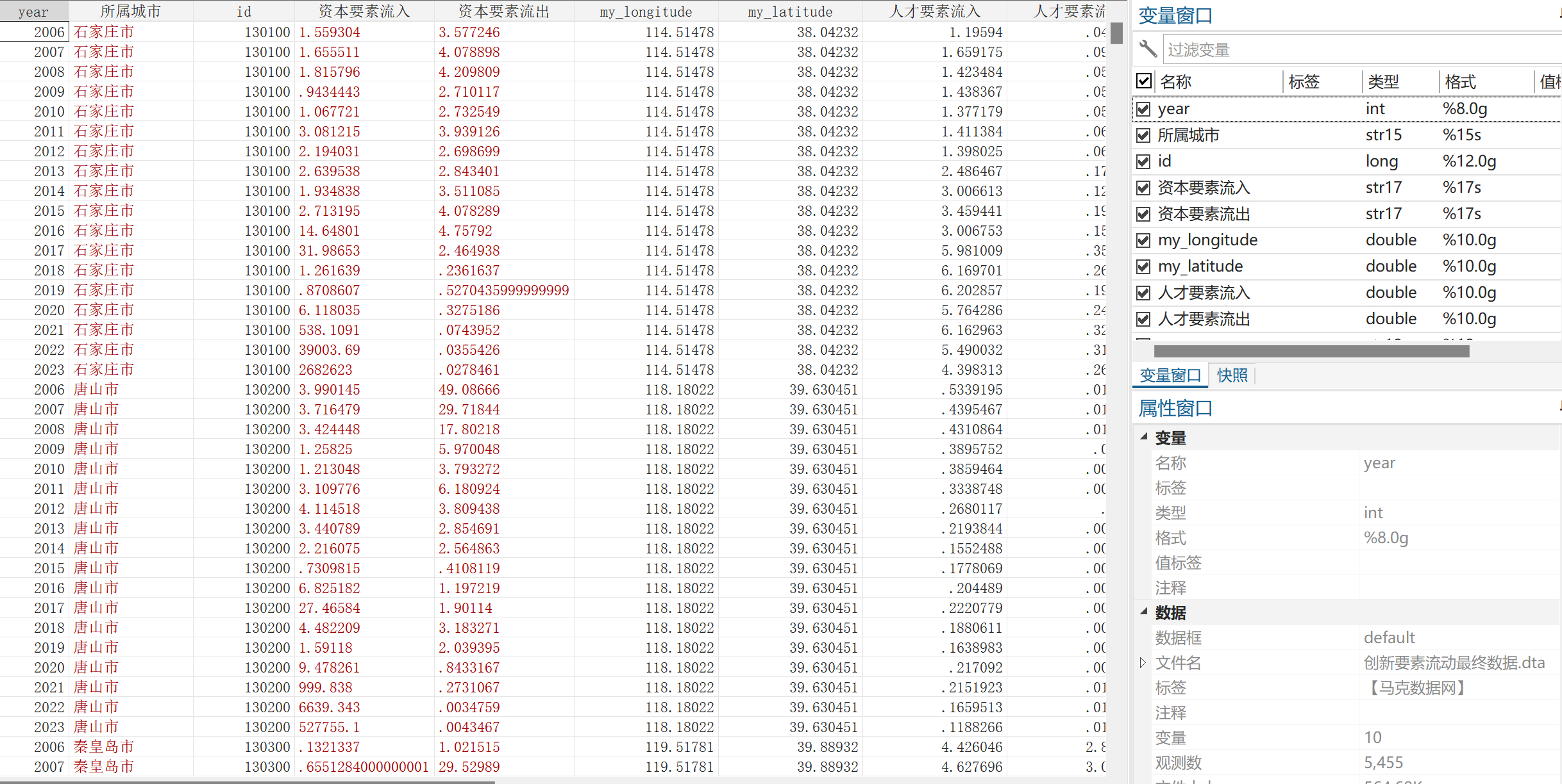 数据名称:地级市-人才、资本创新要素流动数据