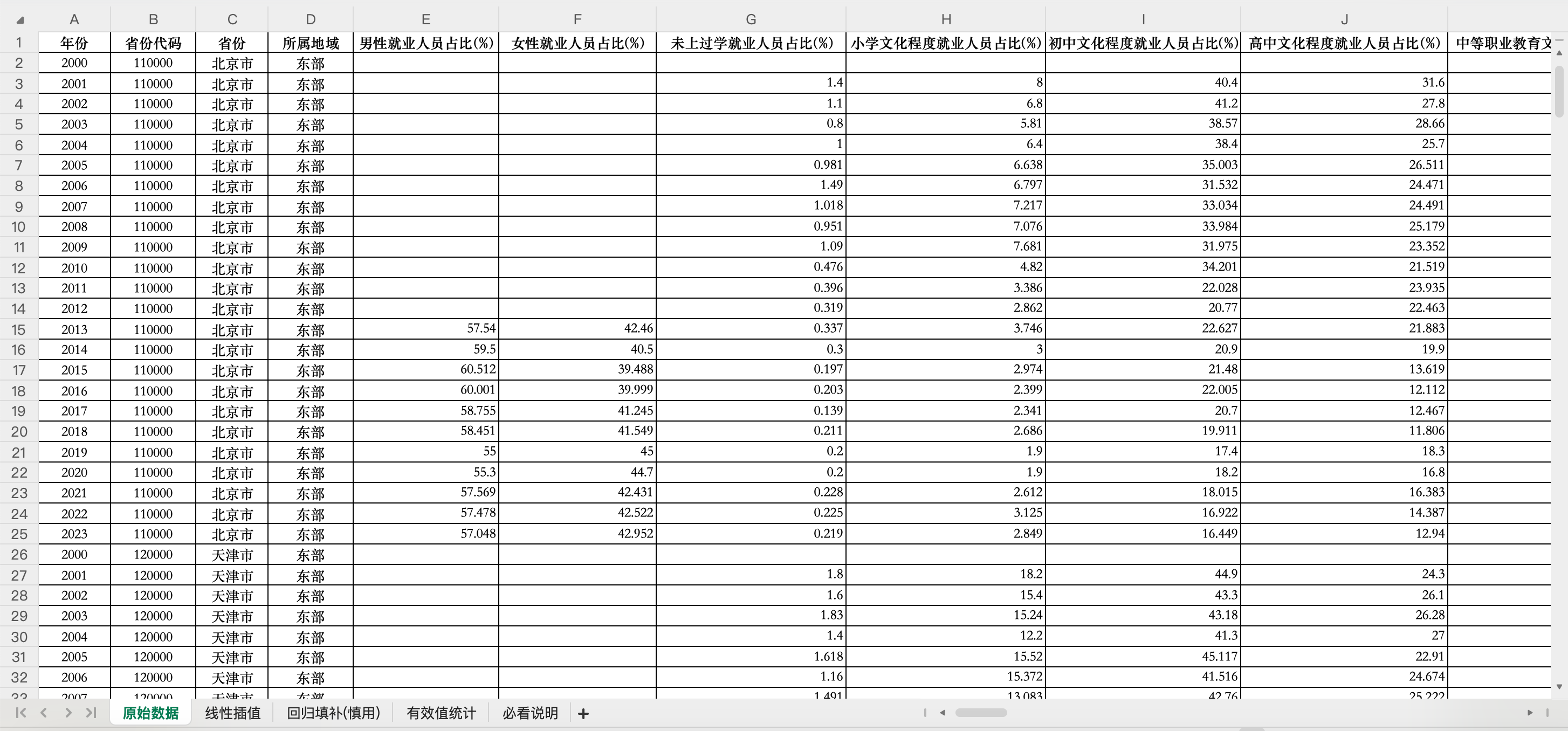《中国劳动统计年鉴》面板数据整理-地区版(2000-2023年)