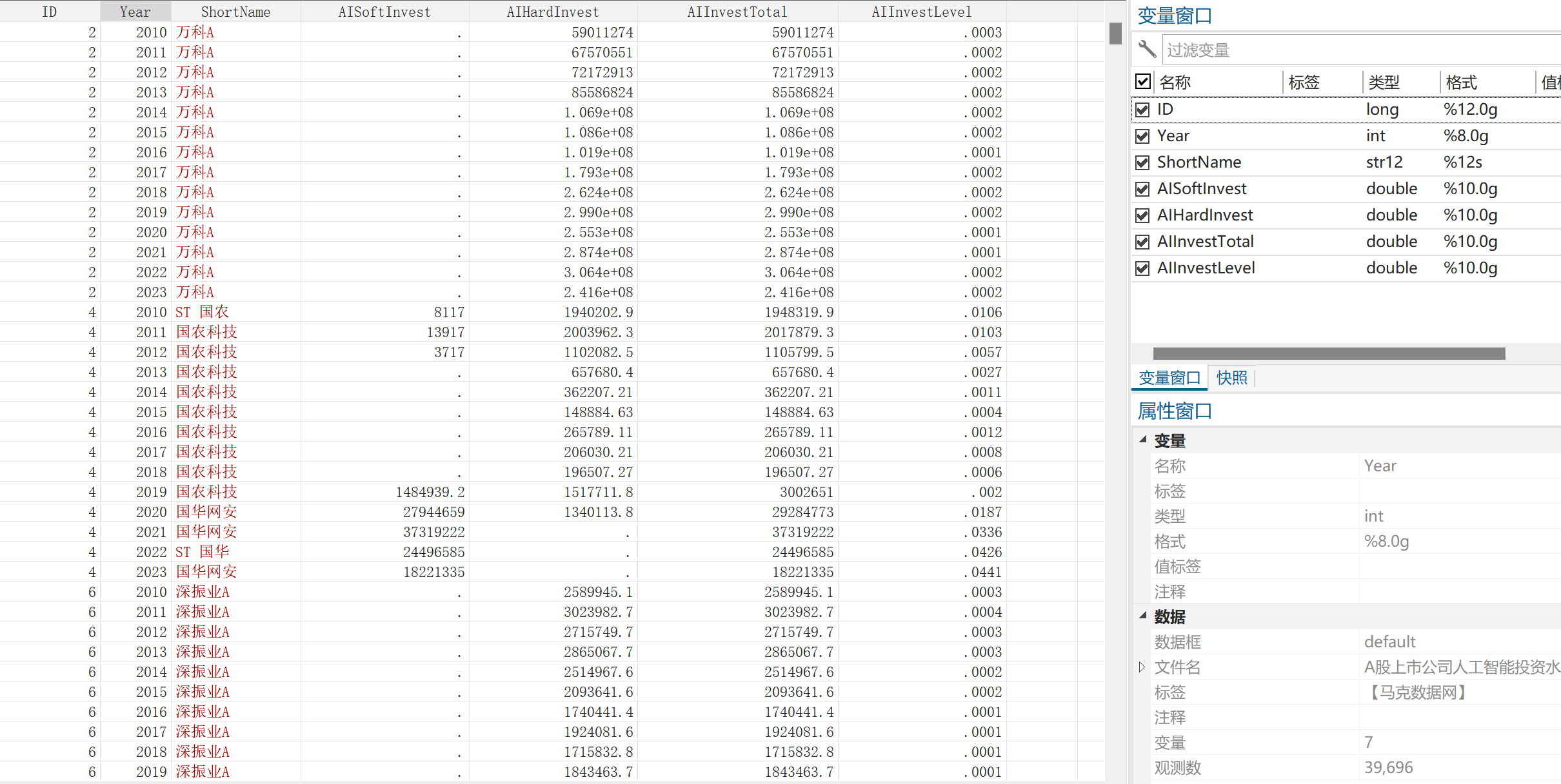 数据名称:上市公司人工智能投资水平数据+dofile