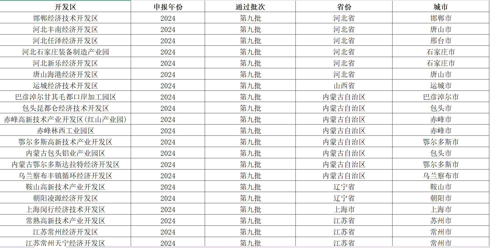 地级市-国家级绿色工业园区名单(2016-2024年)