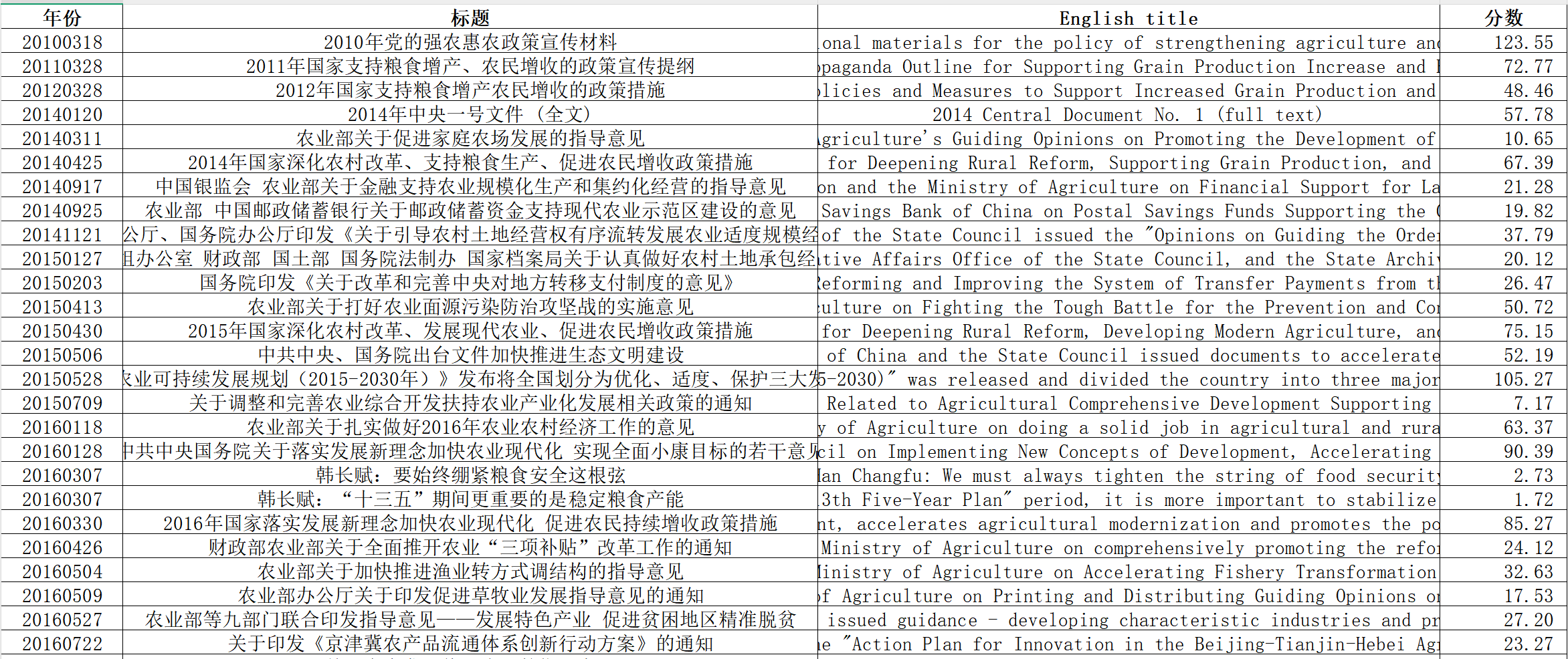 数据名称:中央农业政策强度数据