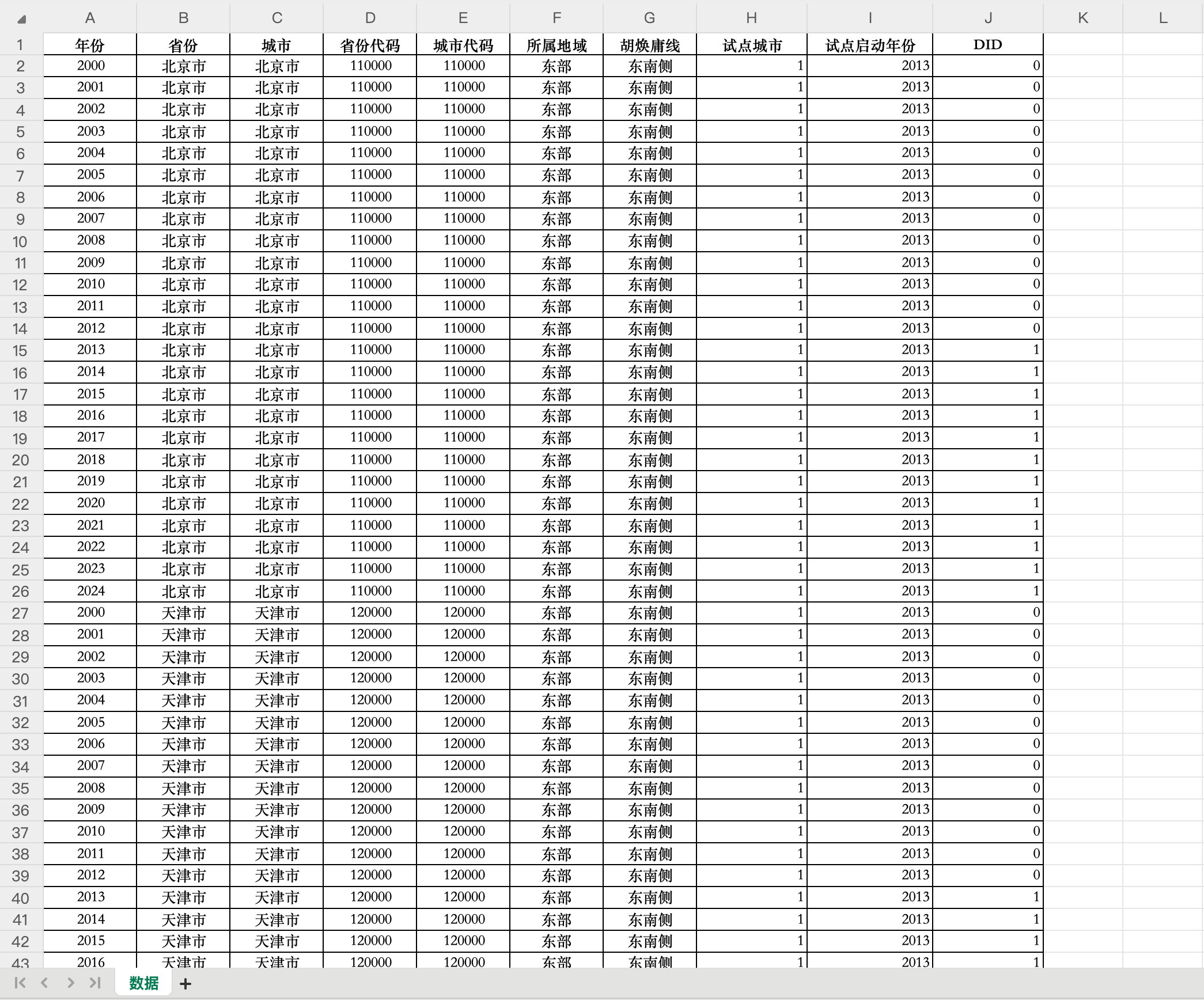 数据名称:中国“碳排放权交易”试点城市名单DID