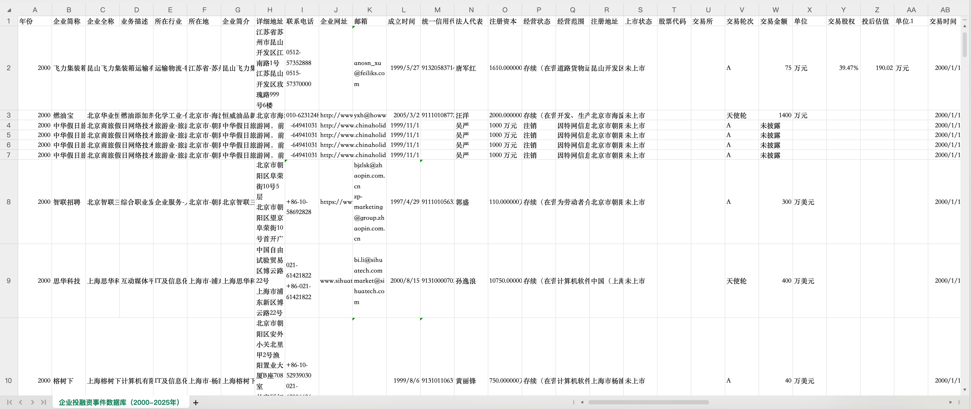 企业投融资事件数据库(2000-2025年)