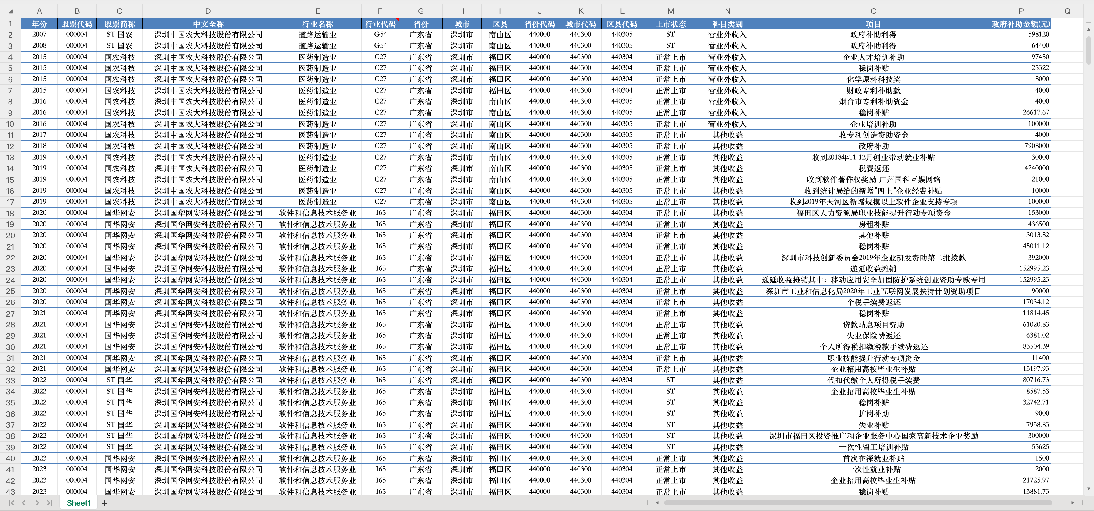 上市公司政府补助明细、统计数据(2007-2024年)