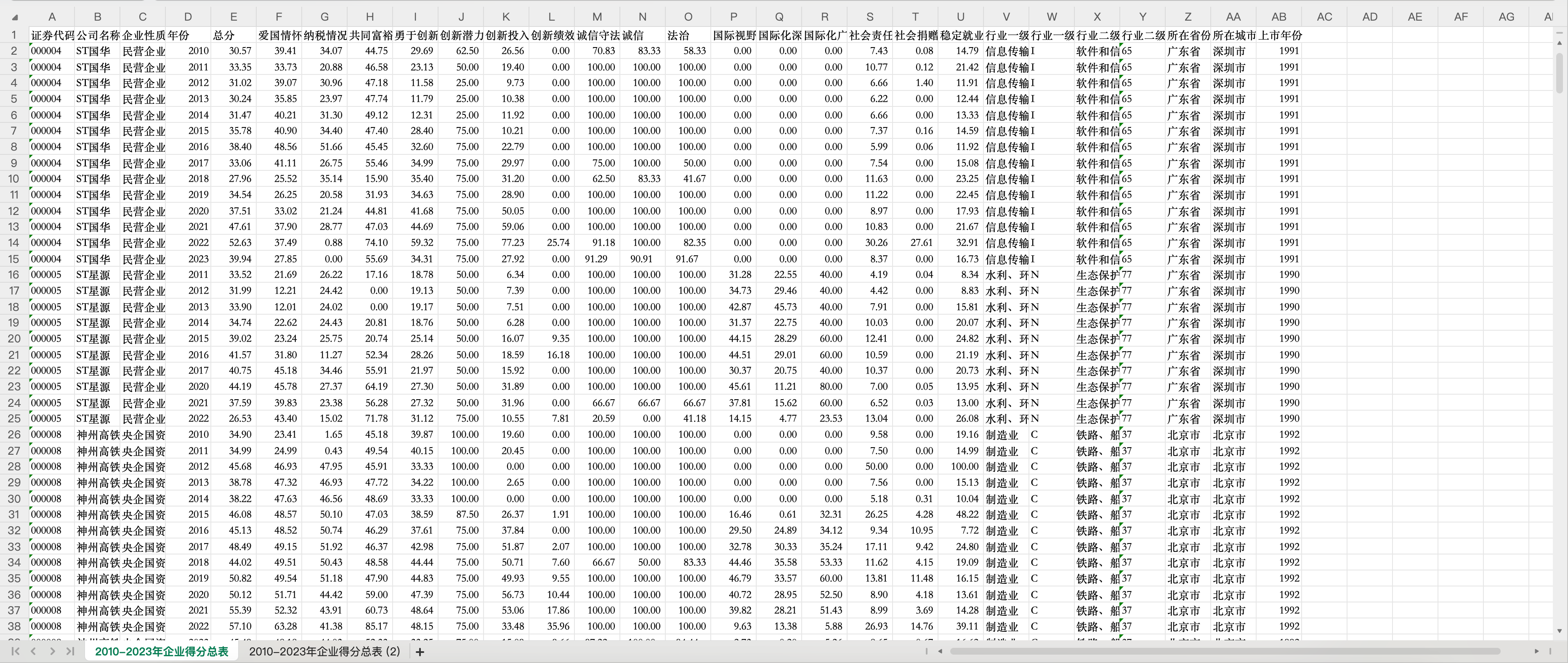 该数据库以新时代中国企业家精神的五个方面为一级指标,构建中国上市公司企业家精神评估指标体系,并量化评估我国沪深股市12个行业近3500家企业2010—2023年共14年间的企业家精神