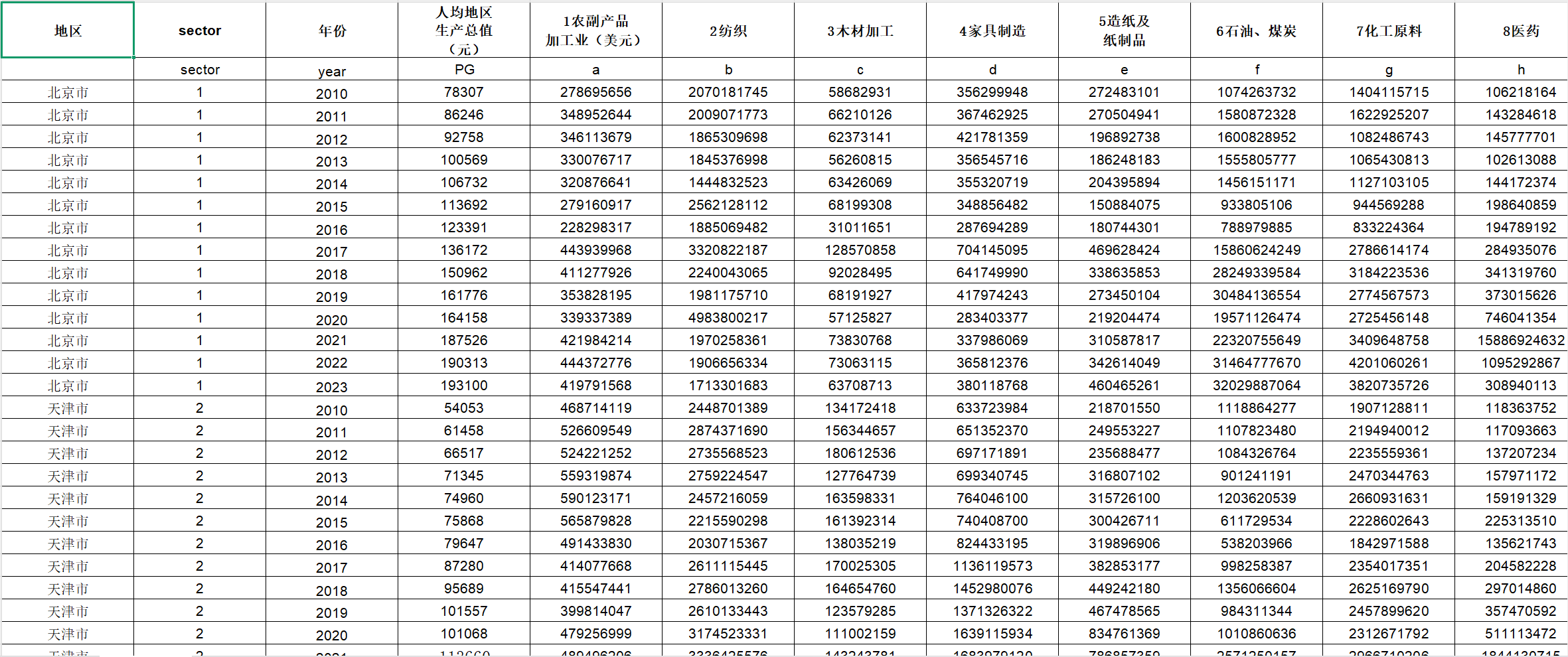 数据格式:面板数据,excel