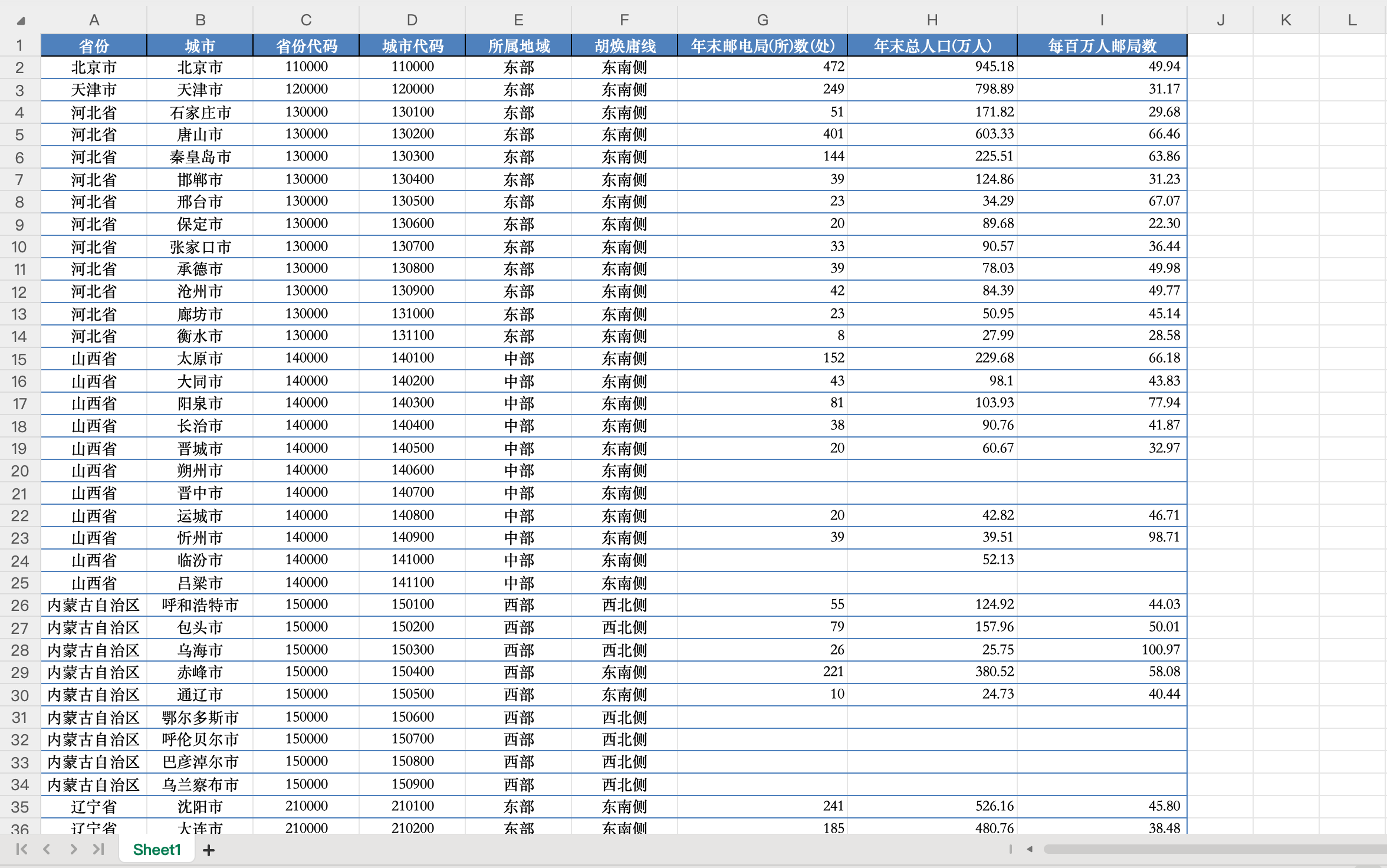 数据名称:1984年每百万人邮局数量