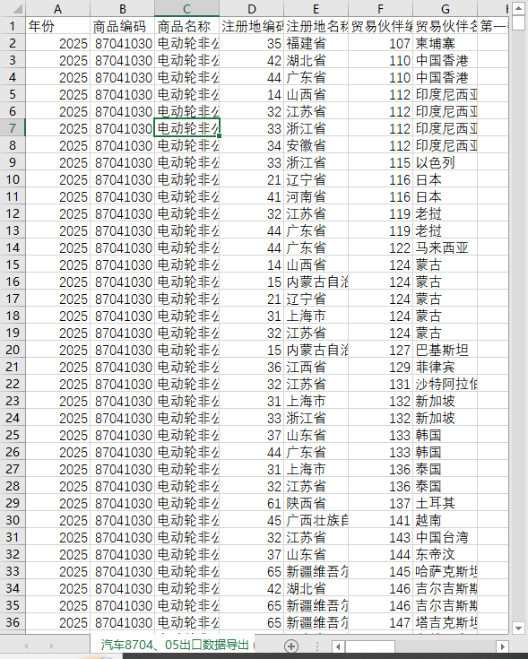 全国31个省份87048705载货汽车特种特殊用途汽车进出口数据2015-2025HS8起重车钻探车混凝土搅拌车等燃油燃气新能源纯电动混动