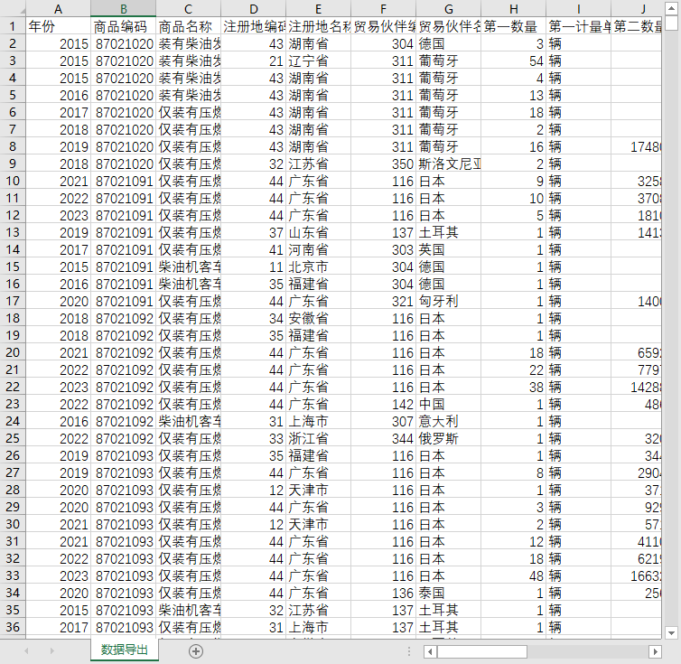 进出口具体明细的产品主要是8702、8703下的具体8位数的商品: