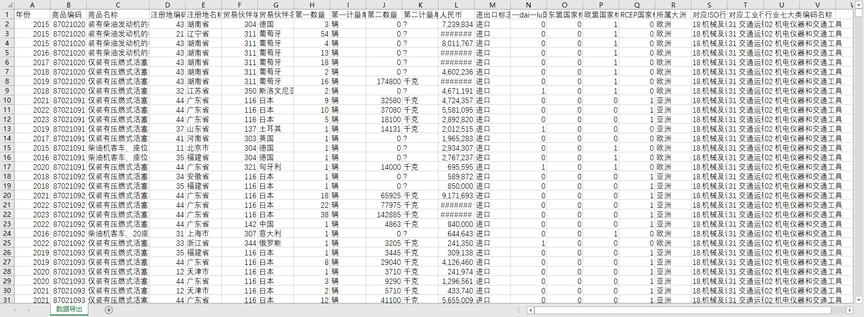 全国31个省份87028703载人汽车进出口全球世界各国2015-2025燃油燃气新能源非插电式纯电动混动东盟欧盟RCEPISO行业七大类工业分类