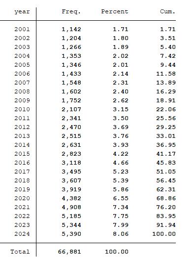 | 上市公司数字化转型程度指标计算Stata代码(2001-2024年数据) | https://bbs.pinggu.org/thread-15681696-1-1.html | 2024 |