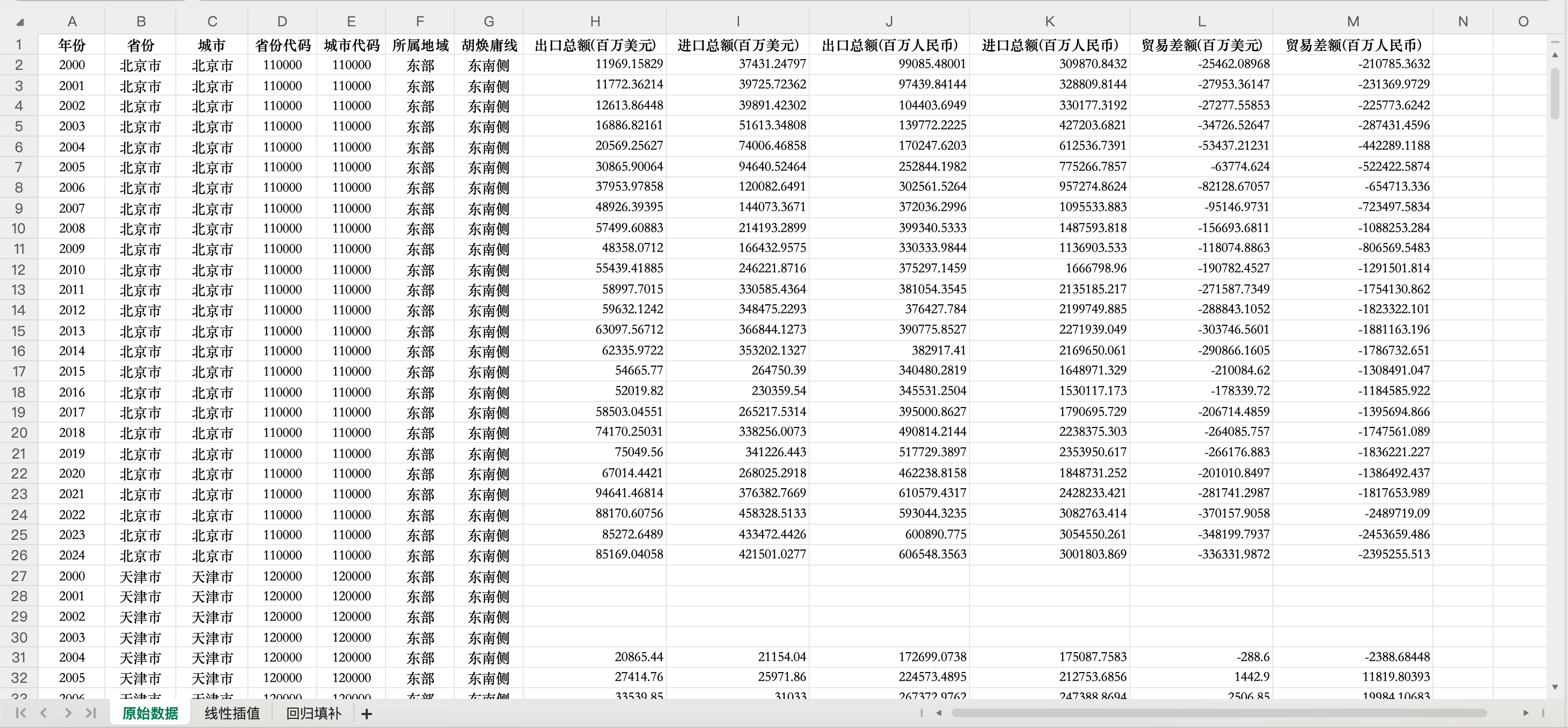 更多说明:含原始数据、线性插值、回归填补3个版本