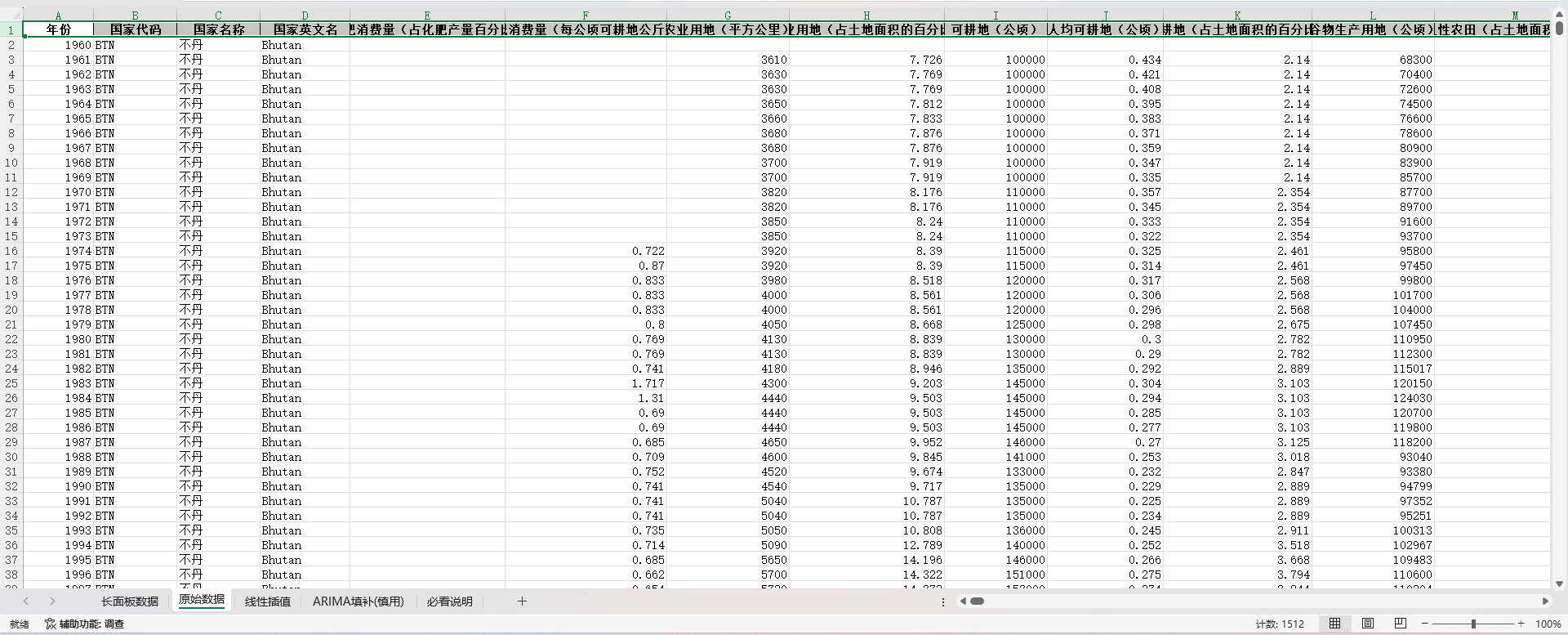 该数据为中文的面板数据,包括长面板、原始数据、线性插值、回归填补4个版本,数据概览如下图: