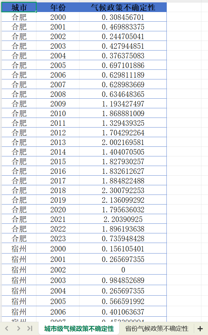 数据名称:中国省、市级气候政策不确定性数据