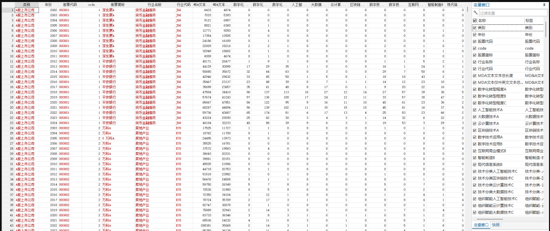 企业数字化转型-MD&A报告314个词频、文本统计(2001-2024年)