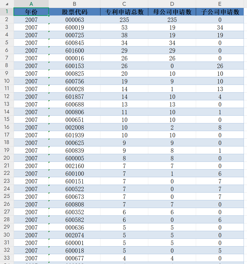 本次分享的数据是上市公司2007-2024年关键核心技术专利申请数据,希望对大家有用