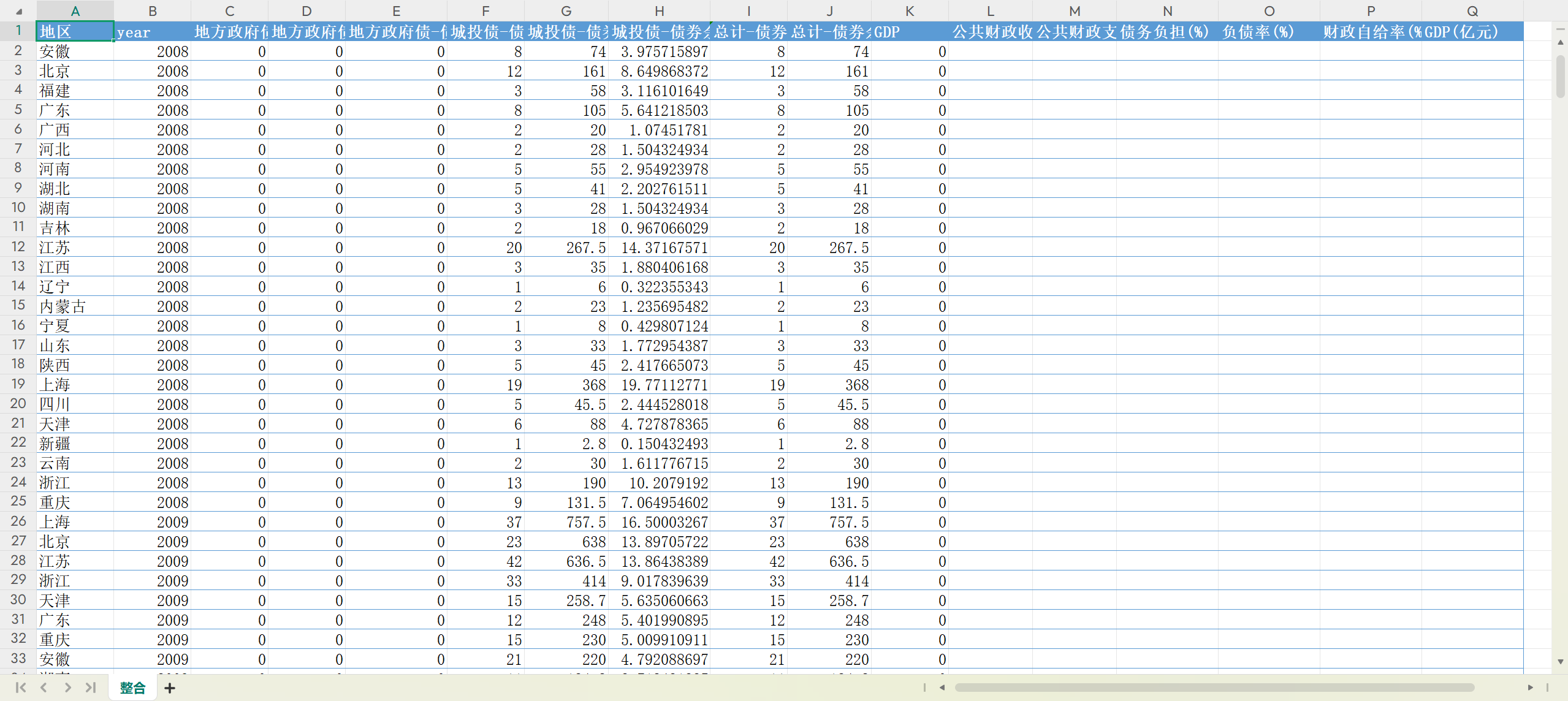 数据名称:省级、地级市-地方债务余额相关数据