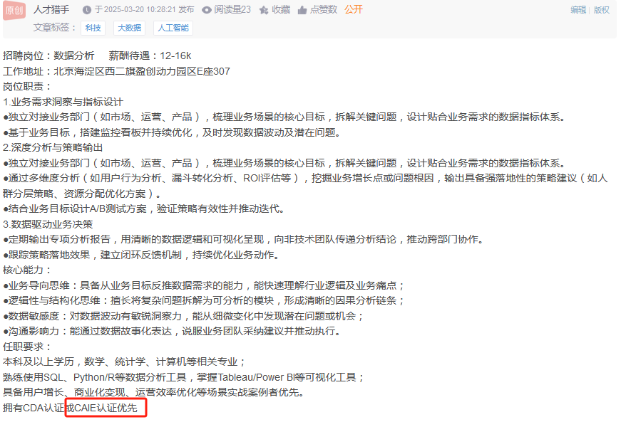 [color=rgba(0, 0, 0, 0.9)]很多人挤破头想进大厂算法岗,却忽略了AI行业早已细分出无数低需求、高薪资、重应用的非典型岗位,文科生、转行党、零基础人群,只要找对方向、掌握核心能力,照样能在AI领域站稳脚跟。而CAIE注册人工智能工程师认证的分级培养体系,从Level I的AI基础认知、Prompt进阶技术、商业应用,到Level II的企业级AI项目落地、大模型技术实践,精准匹配了各类非典型AI岗位的能力要求,成为从业者提升专业竞争力的重要抓手。