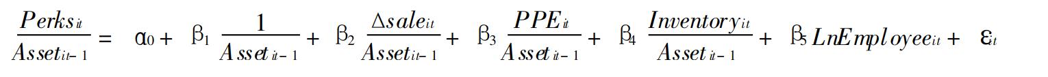 其中,Perks为高管在职消费,数据取自管理费用中扣除了董事、高管以及监事会成员薪酬、计提的坏账准备、存货跌价准备以及当年的无形资产摊销额等明显不属于在职消费的项目后的金额; Asset t-1为上期期末总资产; ΔSales为本期主营业务收入的变动额; PPE,为本期厂场、财产和设备等固定资产的净值;Inventory为本期存货总额;LnEmployee为企业雇佣的员工总数的自然对数。