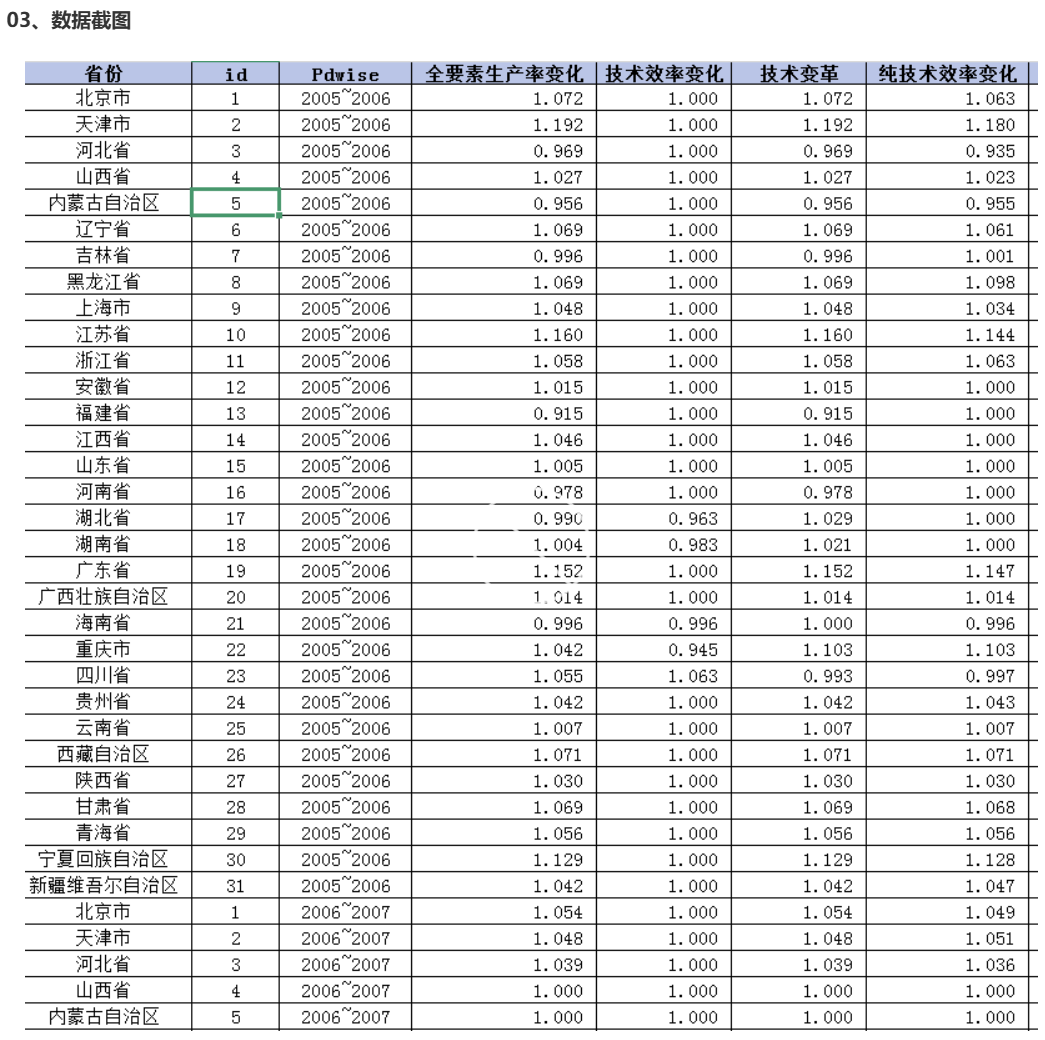 省份 id Pdwise 全要素生产率变化 技术效率变化 技术变革 纯技术效率变化 规模效率变化