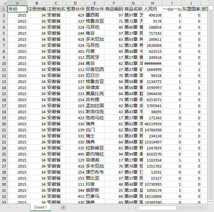 数据范围:每个省份的数据,分别明细到 全球世界各国 的贸易数据